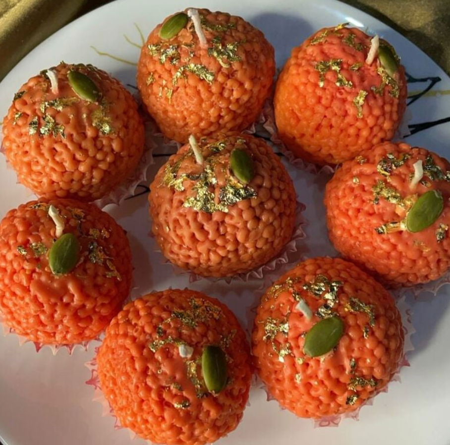 Create stunning candles with this Motichoor Ladoo-inspired silicone mold, featuring a realistic boondi texture and large size design. Made from durable, flexible, and heat-resistant silicone, it's perfect for crafting ethnic-themed or festive candles with a traditional Indian sweet look. Ideal for home décor, gifting, or festival collections.